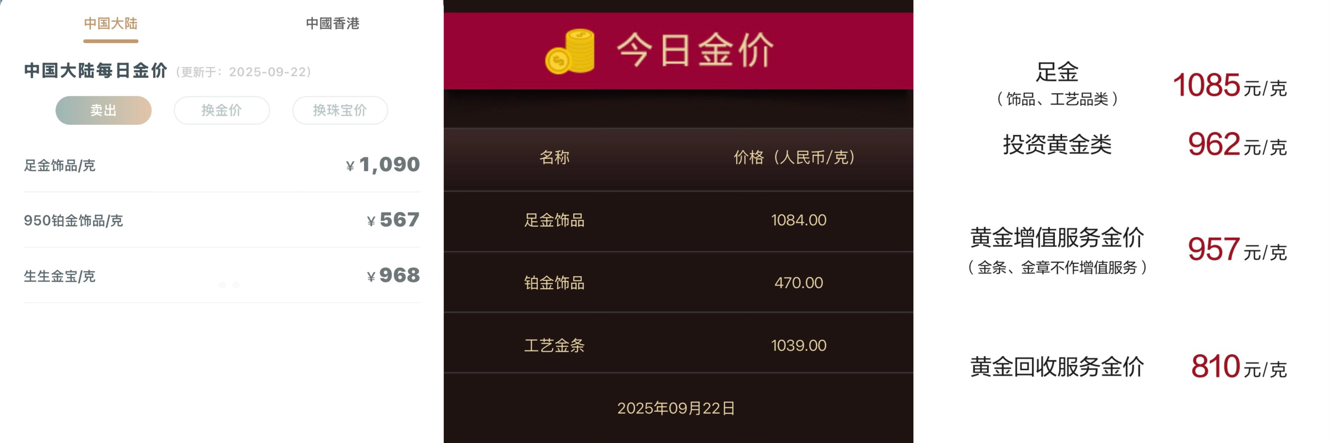 图片所示金价品牌分别为:周生生、老庙黄金、周大福
