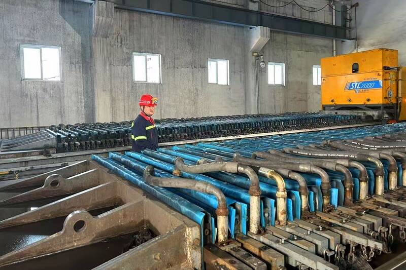 (选煤厂职工对超高压压滤车间进行巡查)