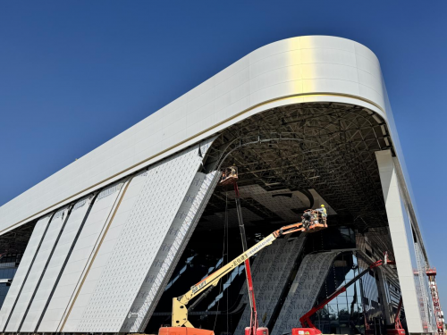 幕墙铝板节点的完成不仅提升了建筑视觉效果,更为项目后续顺利竣工交付奠定了坚实基础,极大推进了整体工程进度。下一步,中铁九局一公司盐碱地农业成果展示中心项目将继续秉持专业、高效、创新的理念,为推动东营市盐碱地农业发展贡献力量。(通讯员:李永健 谭恩壮)