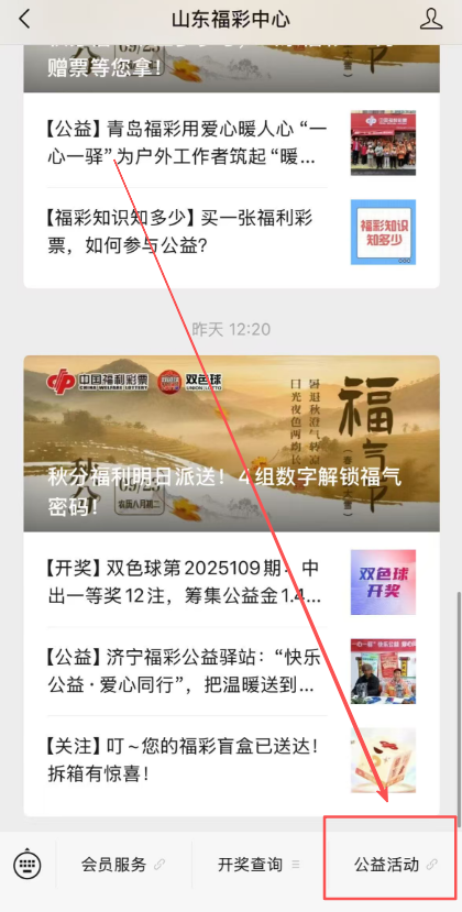 1.关注“山东福彩中心”官方微信公众号