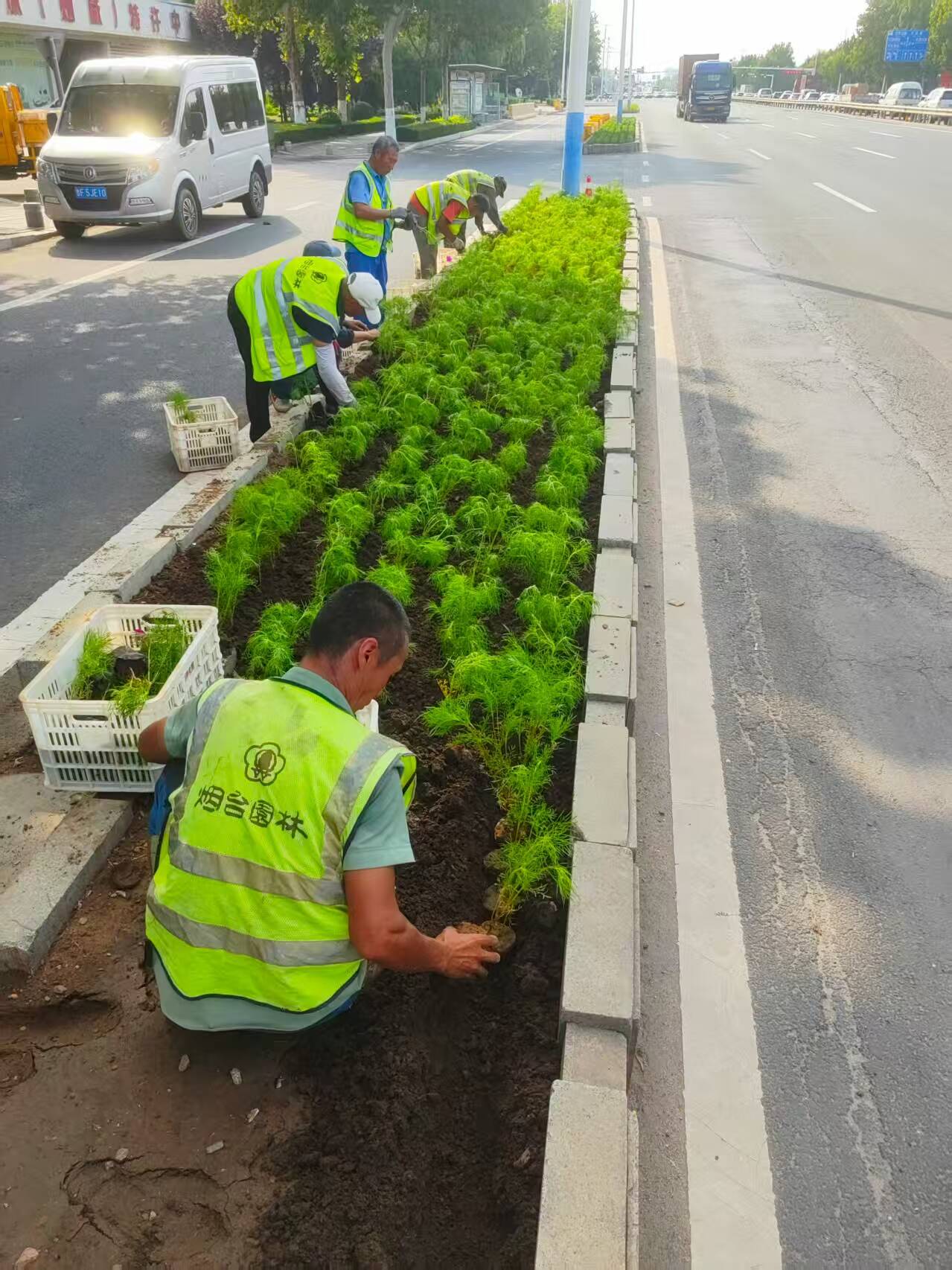 随着国庆节临近,为打造喜庆祥和、优美亮丽的城市景观环境,近日,烟台市园林建设养护中心全面启动市区国庆景观布置工作,组织各基层单位在市区主要道路开展草花栽植和景观设置,以花为媒,迎接国庆。