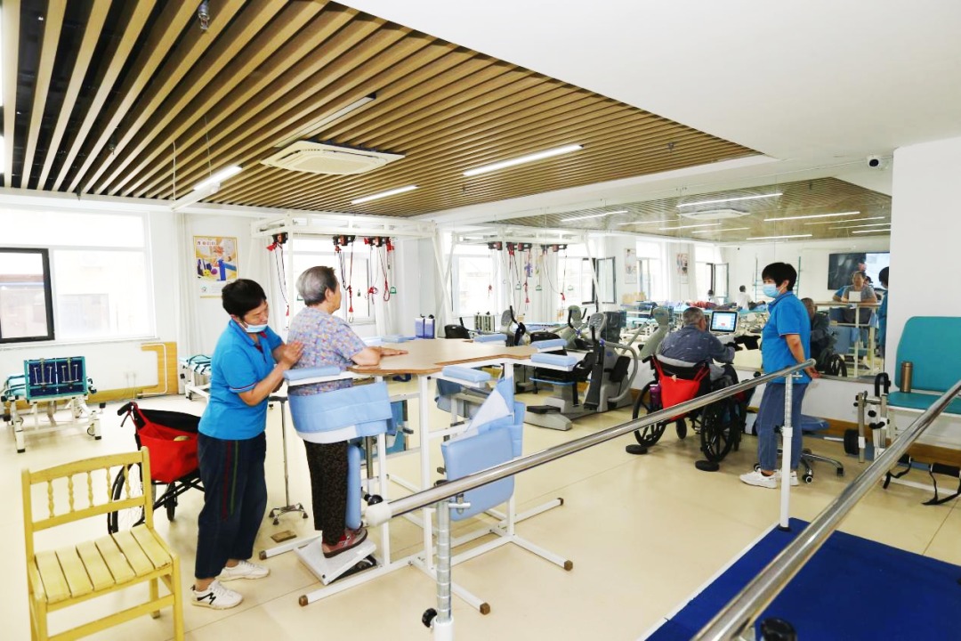 在二楼的康复大厅,中医传统康复治疗与现代西医康复治疗相得益彰。东侧,老人们正在接受针灸、推拿等中医治疗;西侧,运动疗法、手法疗法等现代康复手段也在有序进行。据介绍,该康复中心配备了智能康复训练器、理疗设备等20余台套,组建了6人专业康复师团队,开展物理、作业、言语等个性化康复服务。