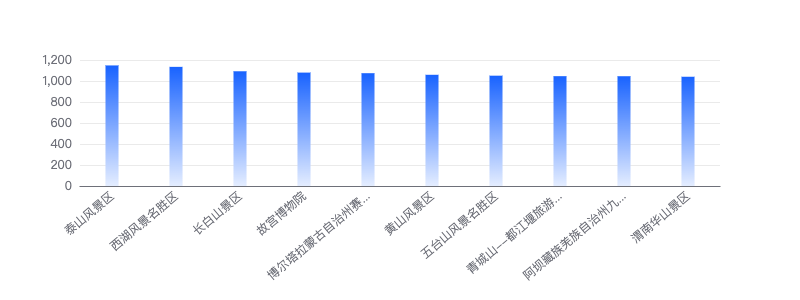 位居排行榜前十的分别是泰山风景区、西湖风景名胜区、长白山景区、故宫博物院、博尔塔拉蒙古自治州赛里木湖景区、黄山风景区、五台山风景名胜区、青城山—都江堰旅游景区、阿坝藏族羌族自治州九寨沟旅游景区、渭南华山景区,其中排名上涨最多的是渭南华山景区,提升16名。上个月排名前十的品牌本月下降最多的是五台山风景名胜区,下降3名。