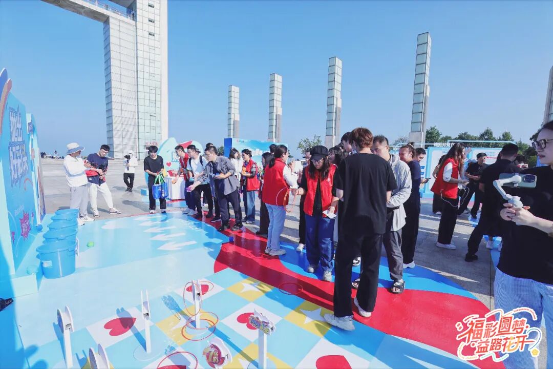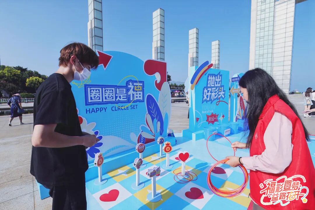 Citywalk的终点站是幸福门广场!这里正在举办“福彩圆梦·益路花开”公益嘉年华活动。公益展示区、知识问答、趣味游戏、购彩体验……内容丰富又好玩!参与互动还能集章兑换福彩定制纪念品,工作人员超耐心,还会贴心提醒理性购彩。