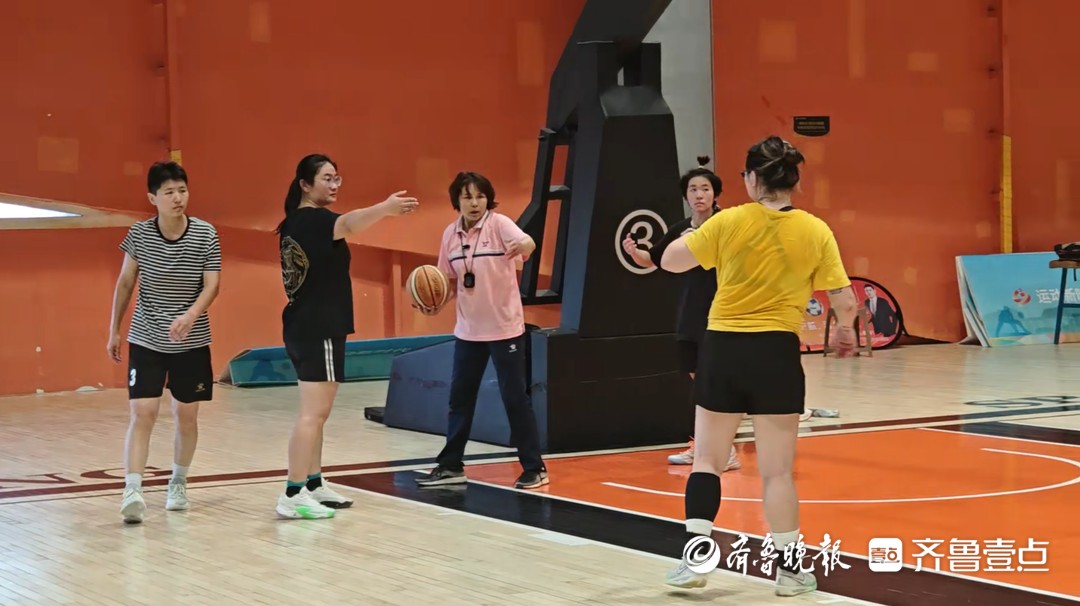 只见她的掌心向上翻转,指尖指向篮筐,随后手臂横向摆动,示意队员们调整跑位路线。队员们立刻心领神会,按照教练的要求继续训练。教练的贴身指导起到了作用,只见一组队员在篮下快速完成了传球、防守、投篮,篮球在空中划出一道弧线,稳稳落入篮筐。队员们比出“OK”的手势,嘴角扬起灿烂的笑容,张爱玲也朝向队员竖起了大拇指,同时用口型喊着“好球!”