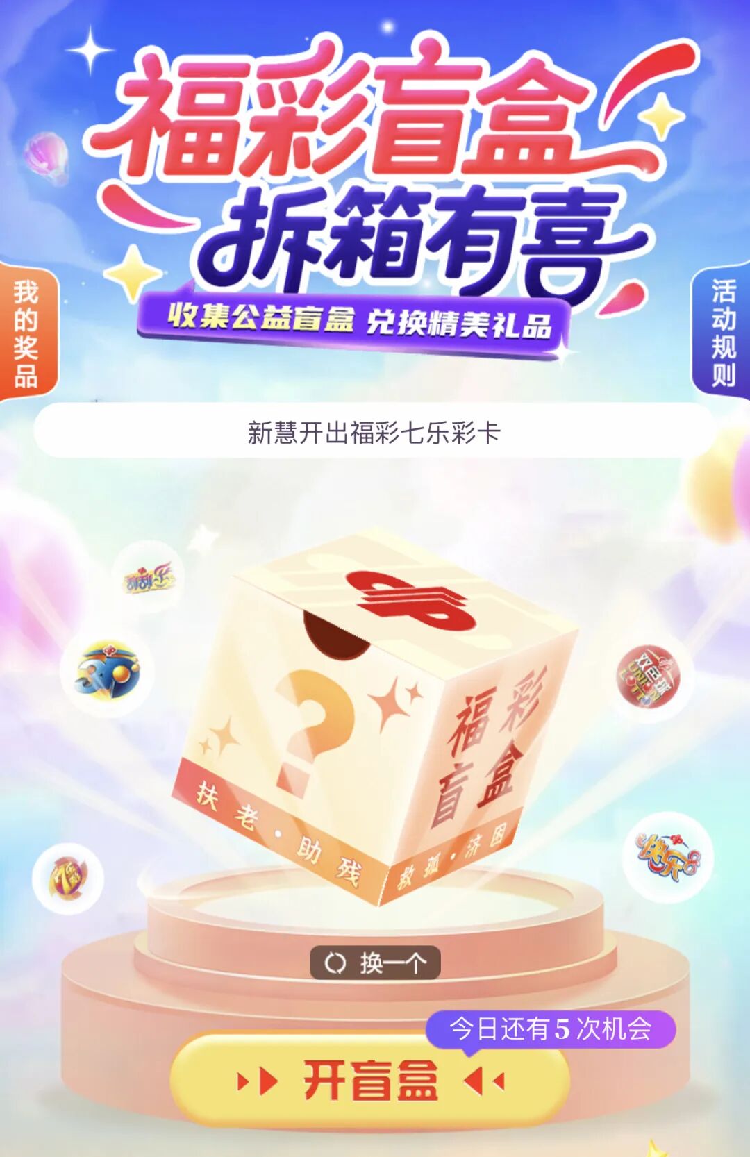 在收集盲盒的过程中,您不仅能收获乐趣和惊喜,还能了解福彩游戏知识,感知福彩公益成果。