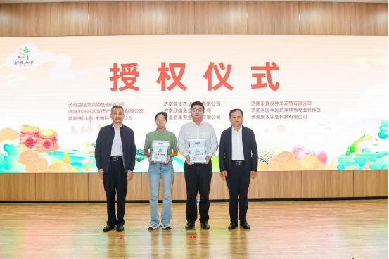 活动现场举行了“好味知济”区域公用品牌授权仪式,吴金凯、石治国分别为济南易丰科技有限公司、济南聚农农业科技有限公司颁发授权书。