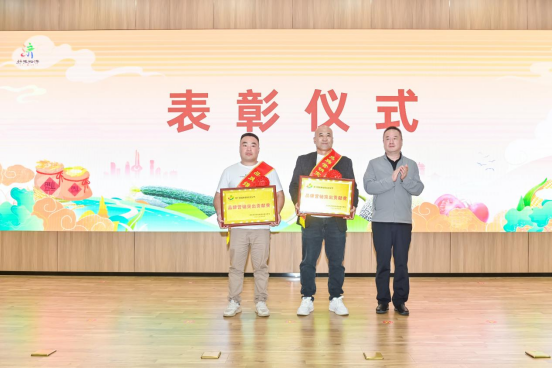 表彰环节中,区农业农村局局长王兴泉、区文化和旅游局局长王春兰、区融媒体中心主任孟强、区委统战部副部长黄帅、区委宣传部分管日常工作的副部长刘京祥分别向获得“曲堤黄瓜种植能手”“乡村振兴示范单位”“文明诚信客户”“品牌营销突出贡献奖”的单位及个人颁奖。