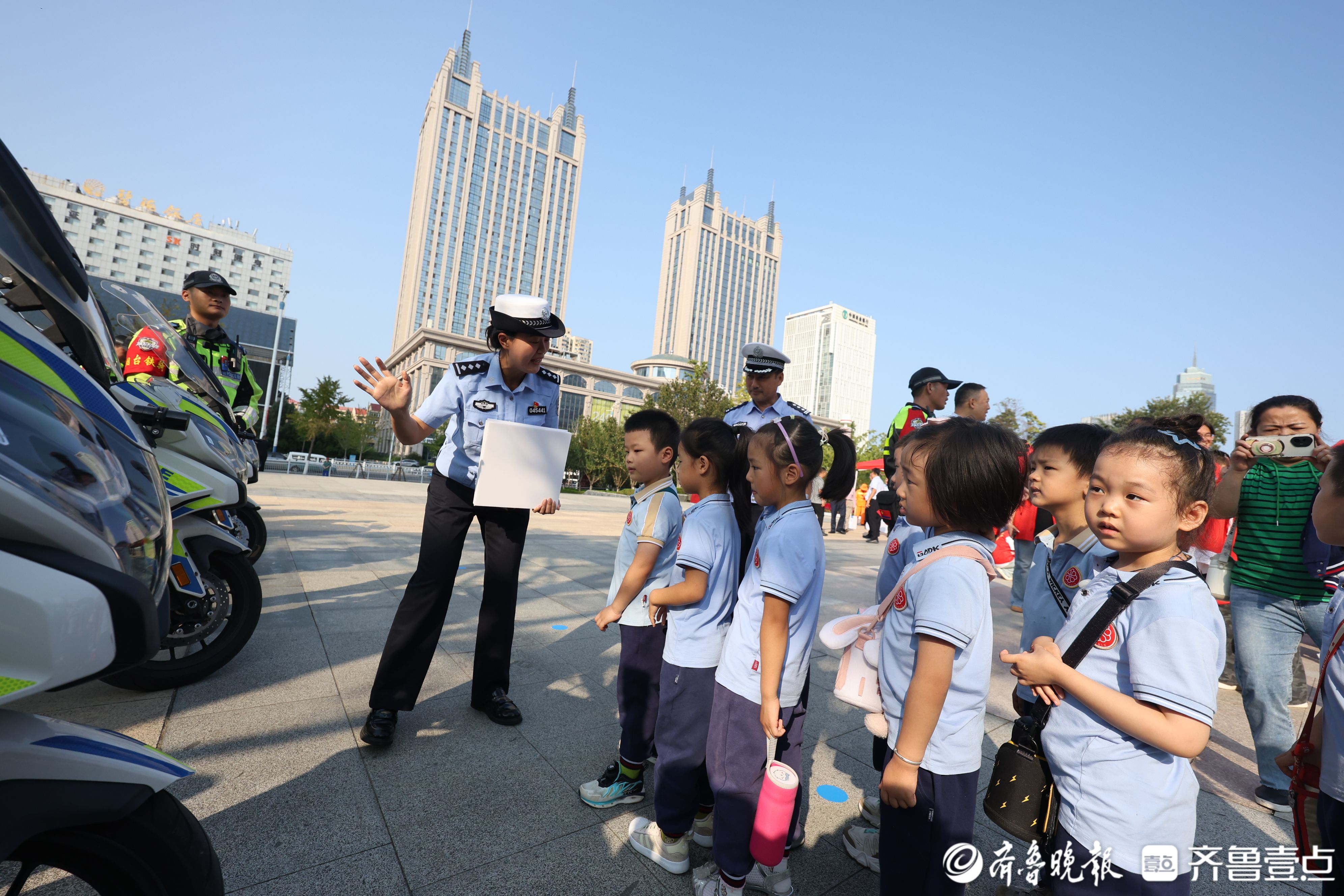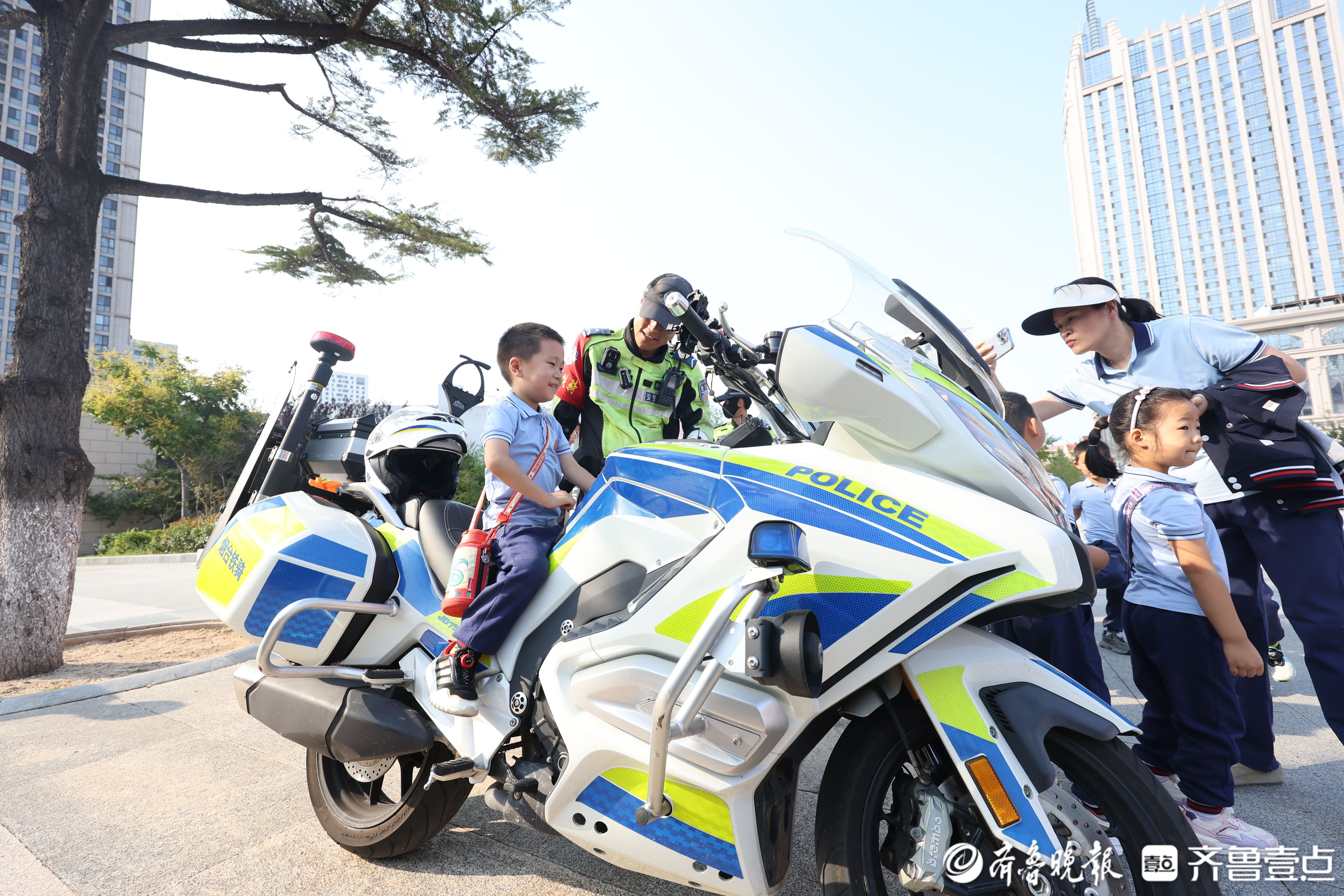 烟台交警带领学生近距离体验“铁骑”