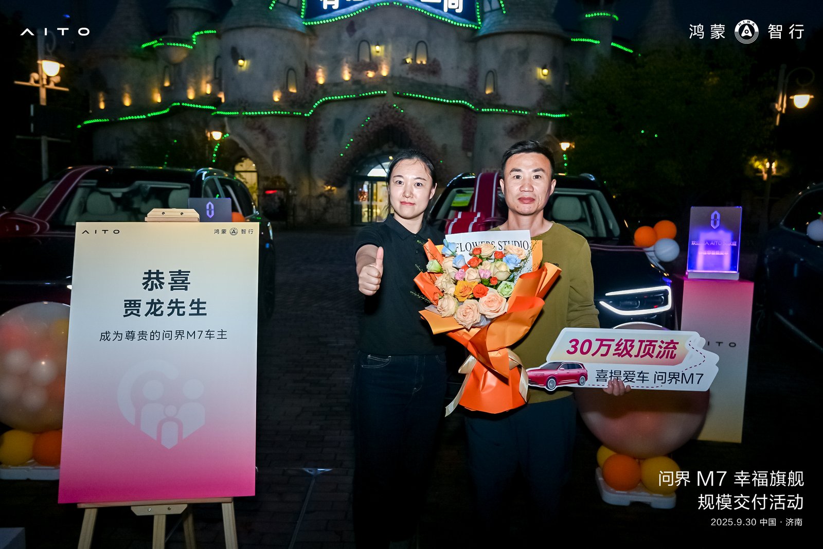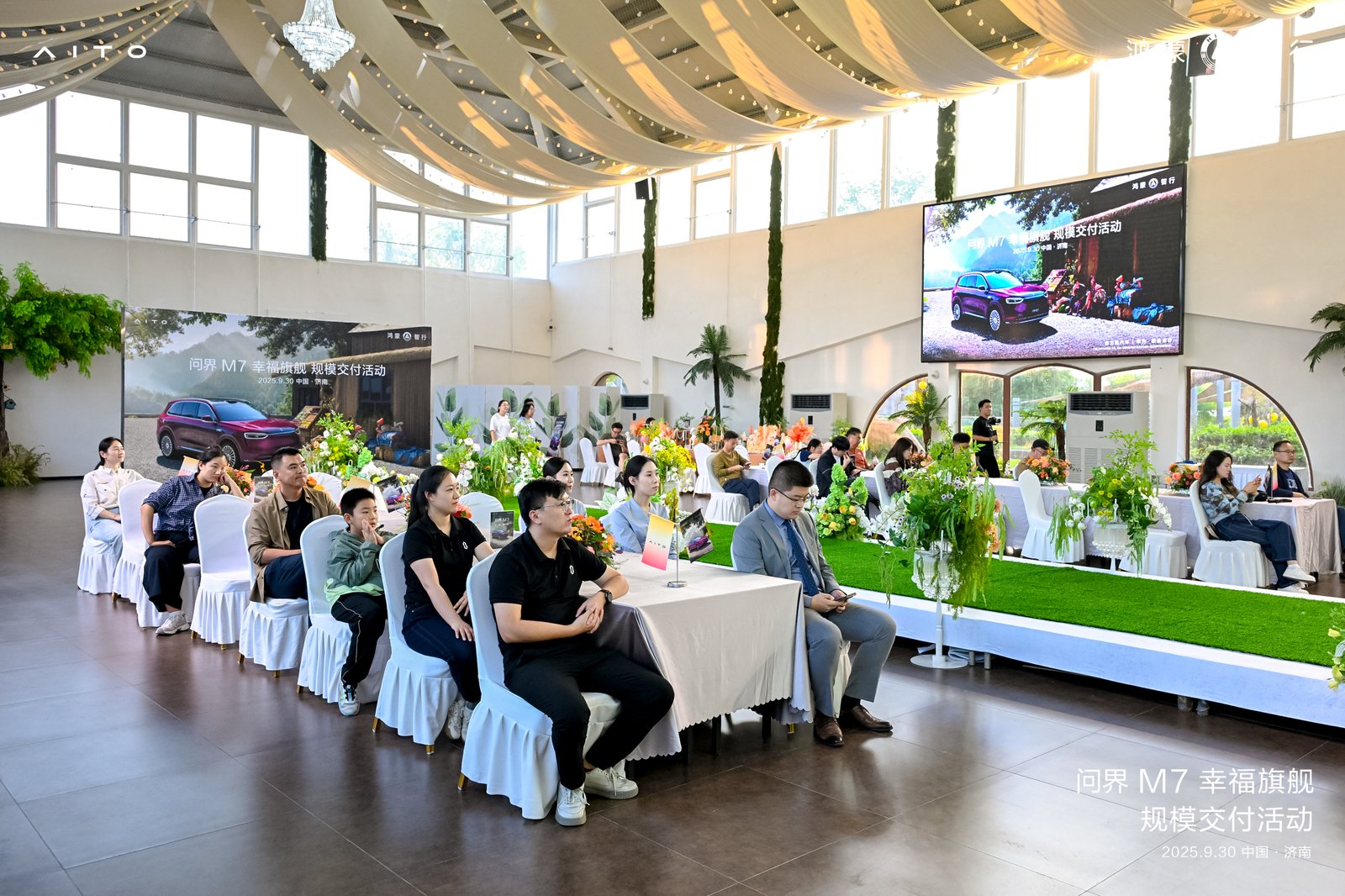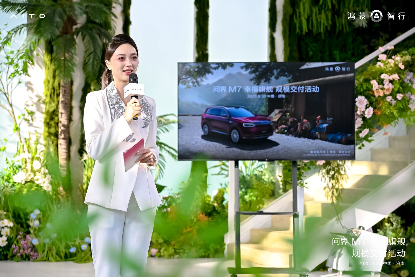 此次 M7幸福旗舰规模交付仪式,不仅是问界 M7 加速市场落地的重要节点,更标志着济南地区 “智慧出行新篇章” 的正式开启,将进一步满足当地用户对高端新能源车型的需求。活动现场,首批车主代表也分享了对问界 M7 的期待与认可,盛赞其 “兼具豪华设计质感与绿色环保价值”。