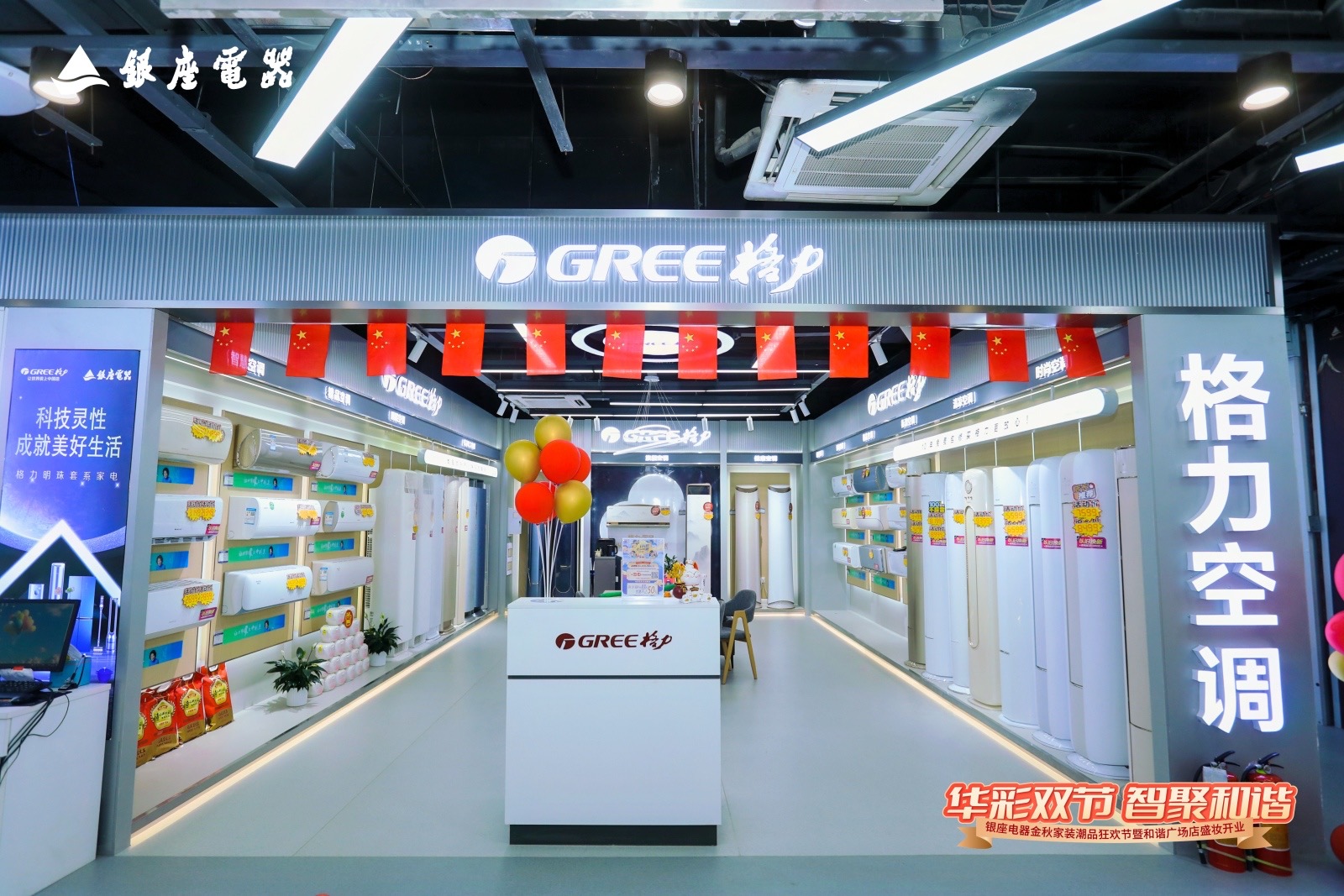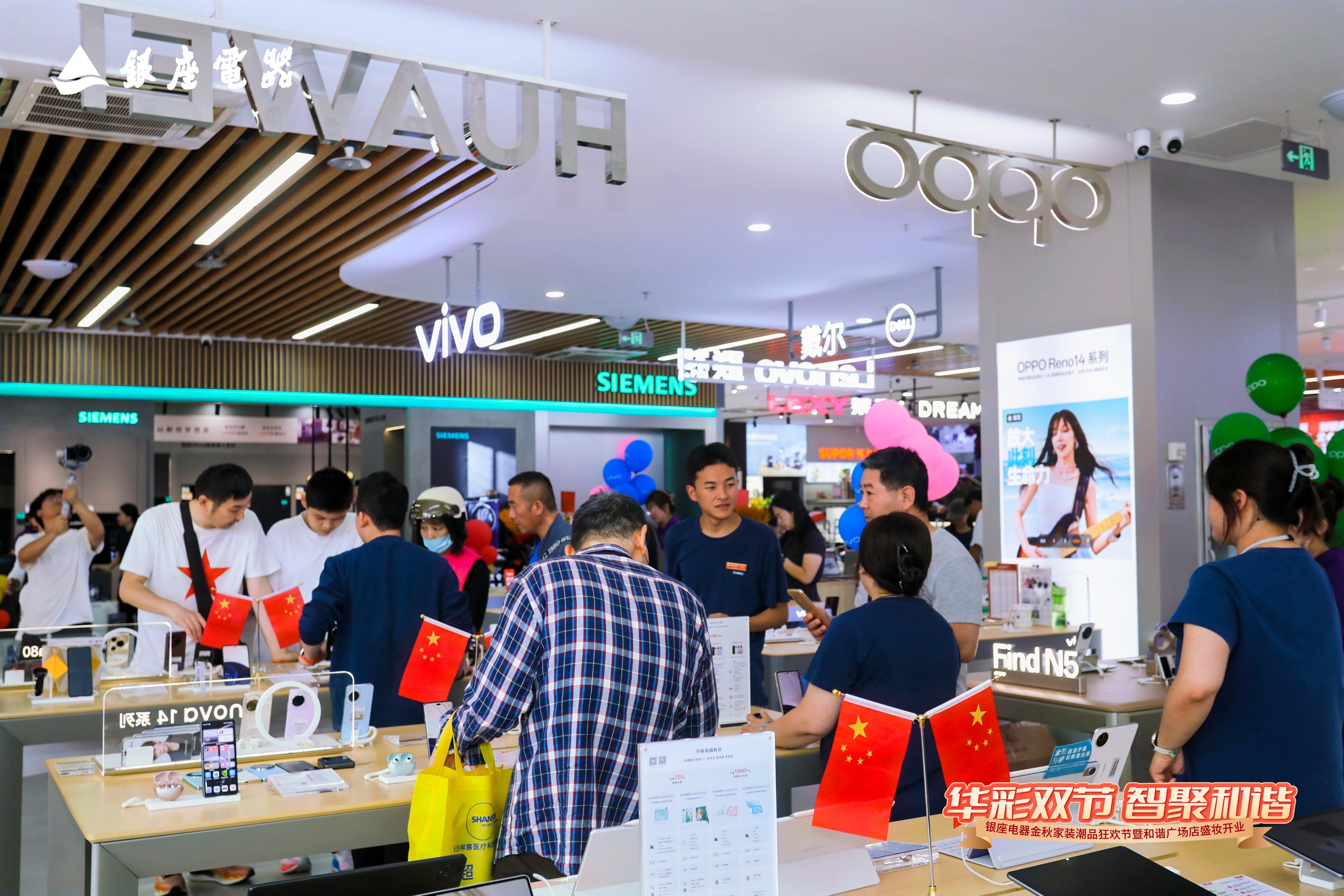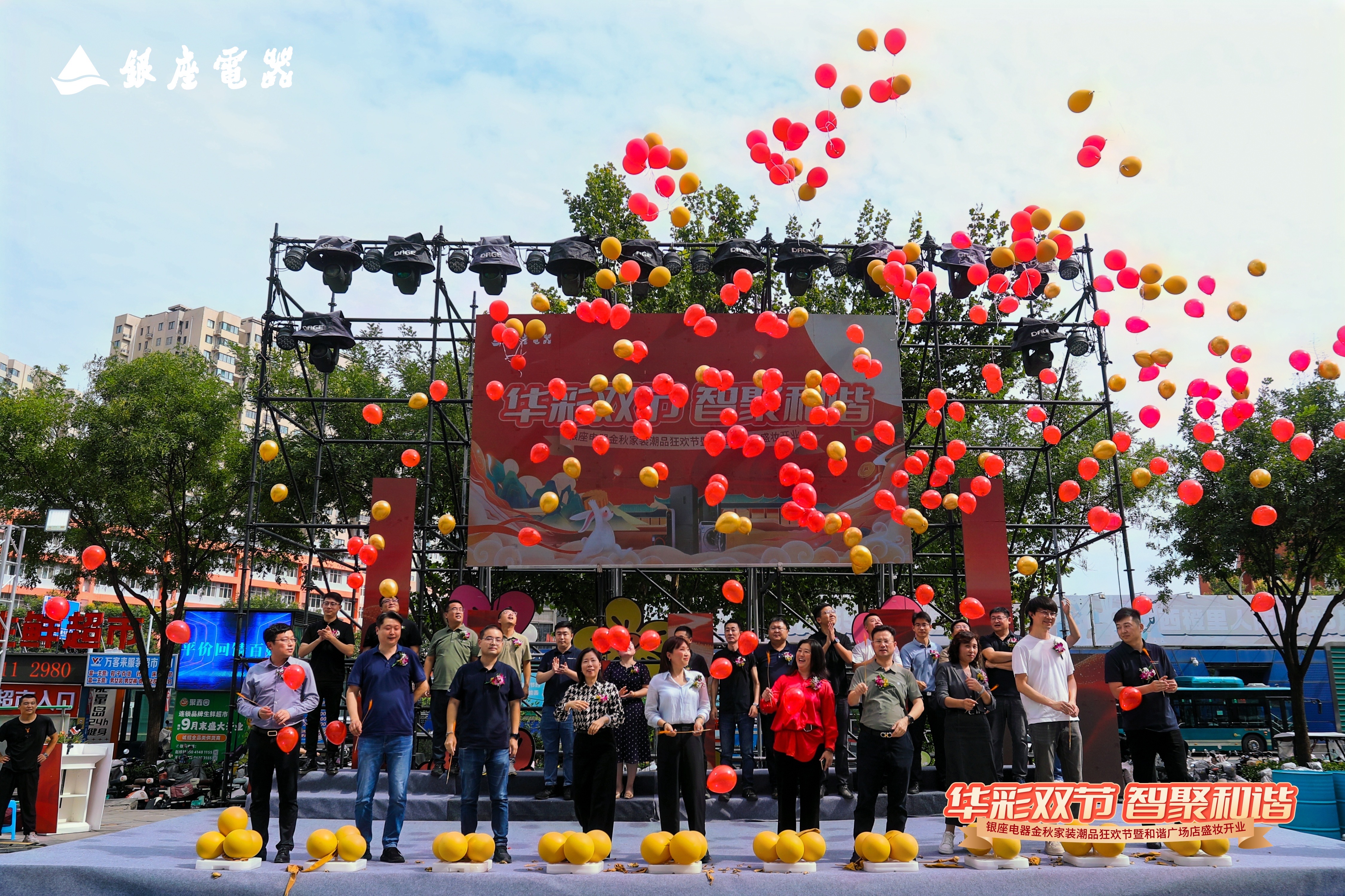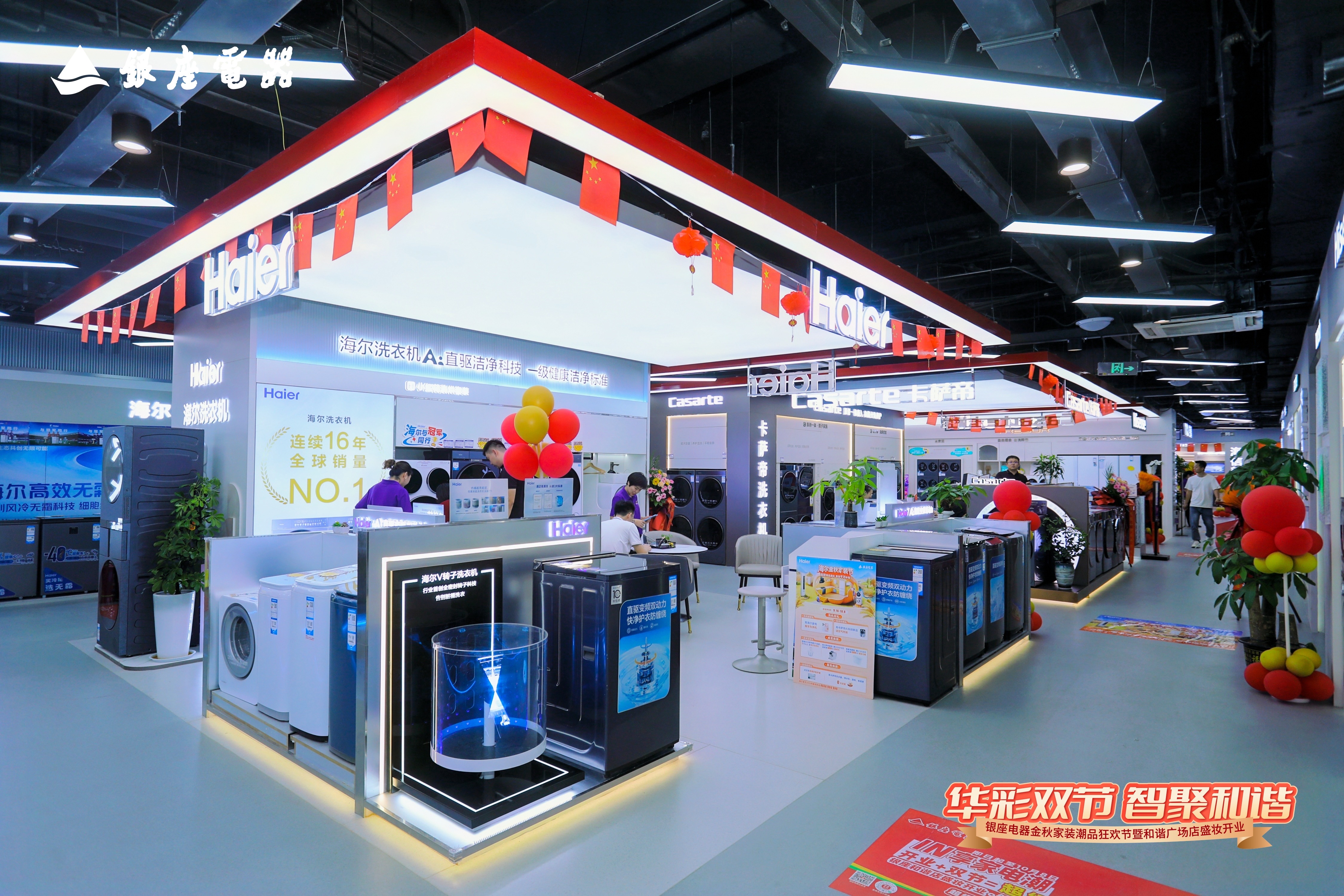 10月1日,恰逢国庆中秋双节叠加的喜庆时刻,银座电器金秋家装潮品狂欢节暨和谐广场店盛妆开业活动盛大举行。本次开业以“华彩双节 智聚和谐”为主题,融合中秋团圆温情与国庆家国情怀,打造了一场集国潮文化、家电焕新、沉浸体验于一体的金秋家装盛宴。