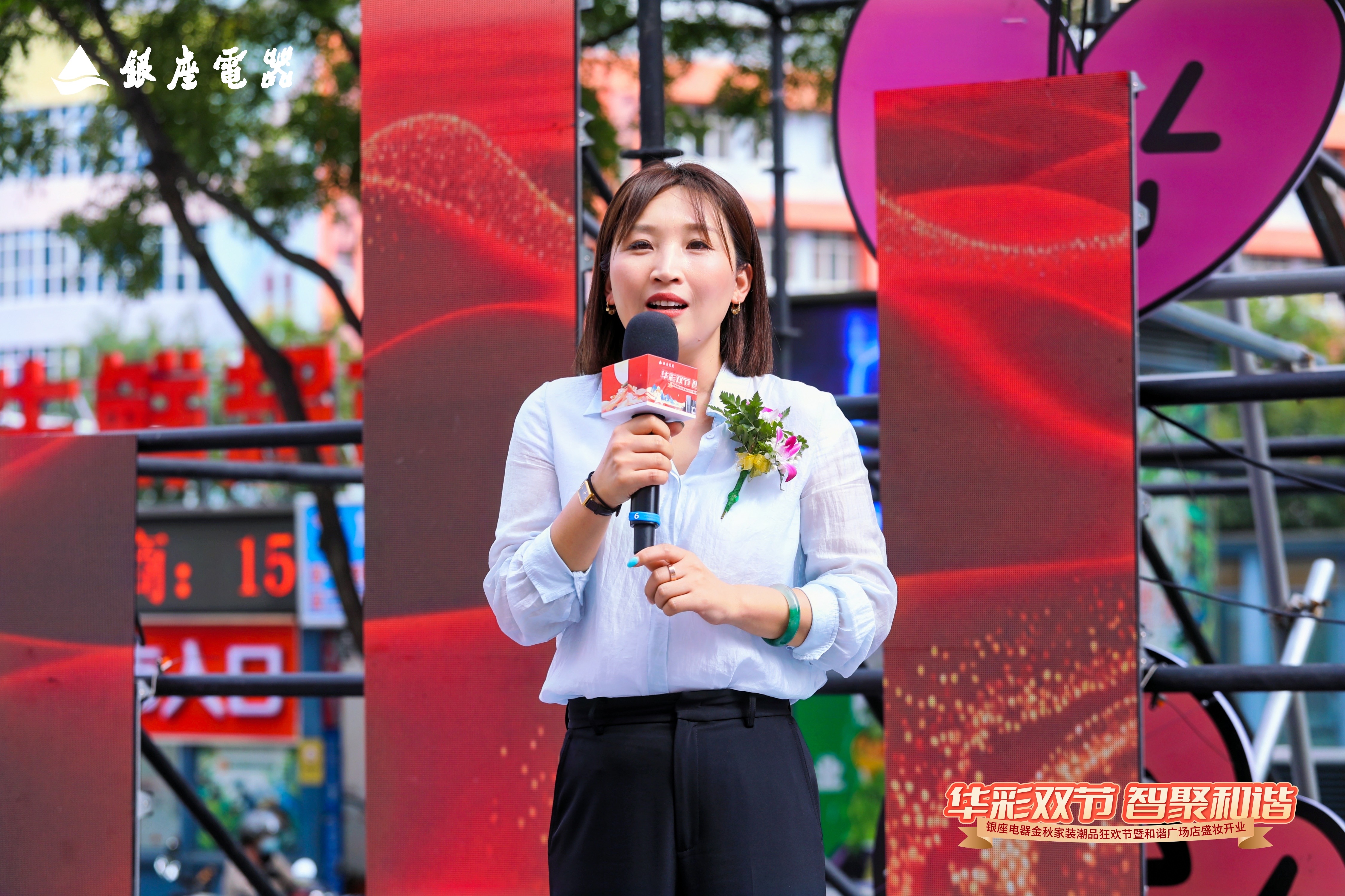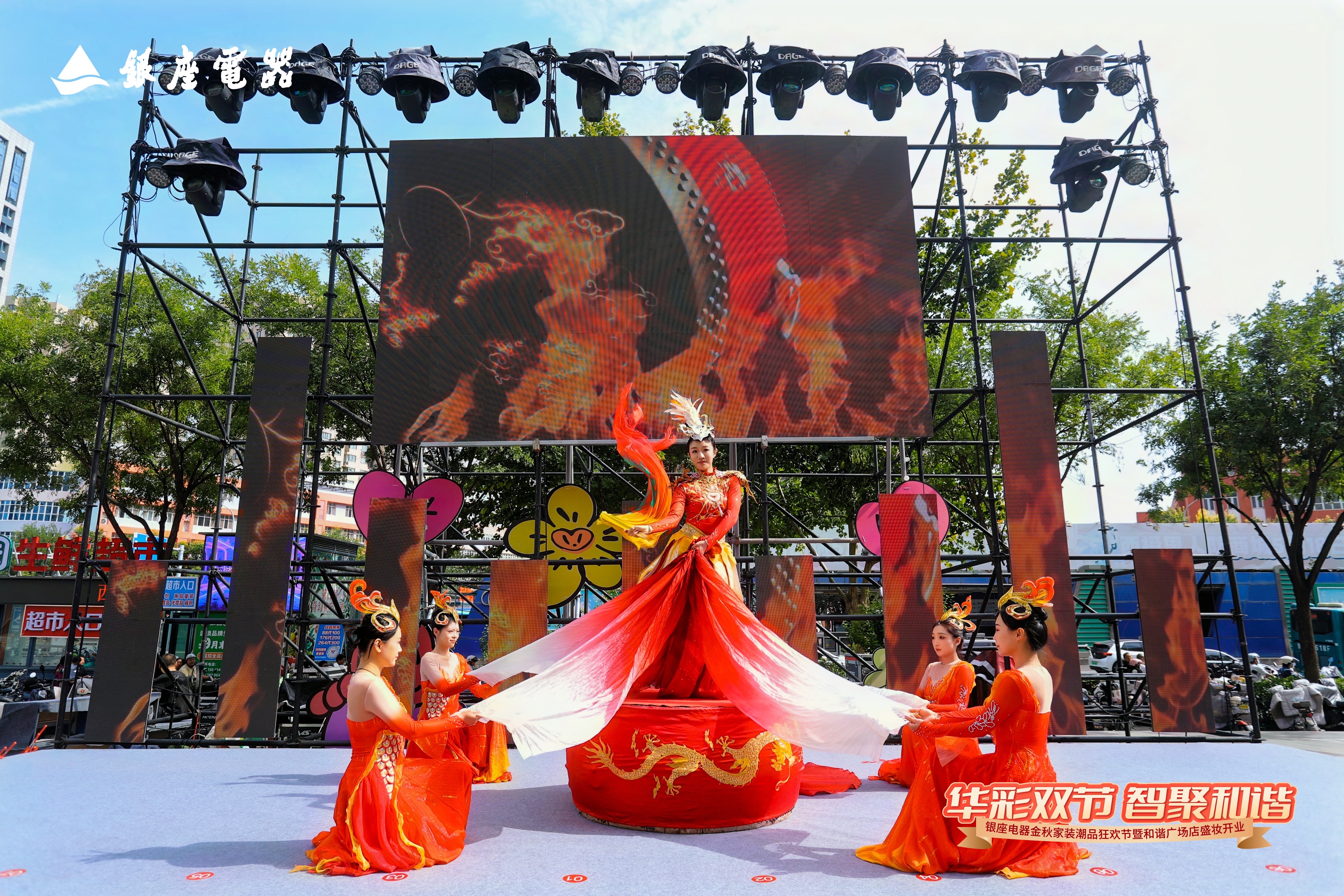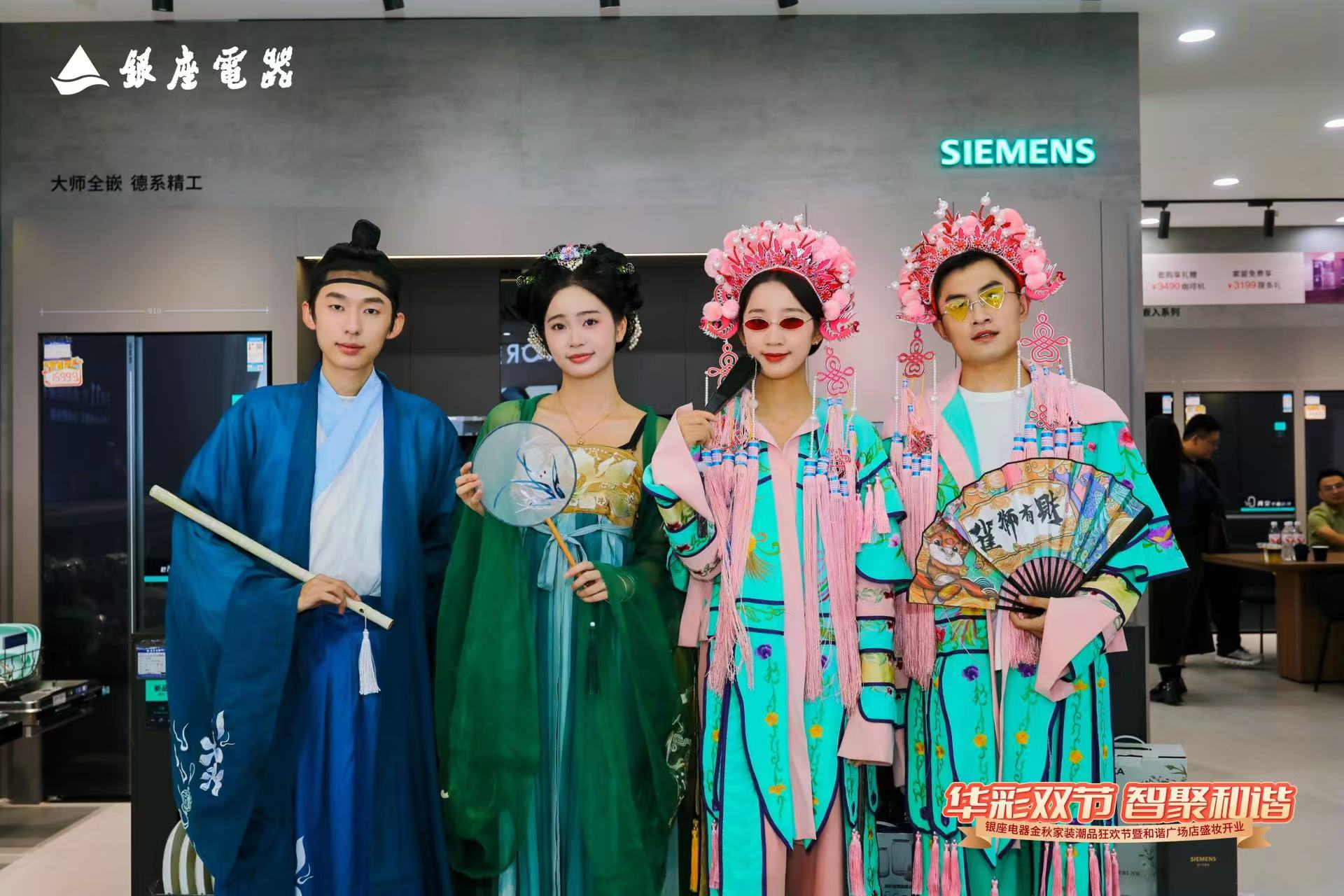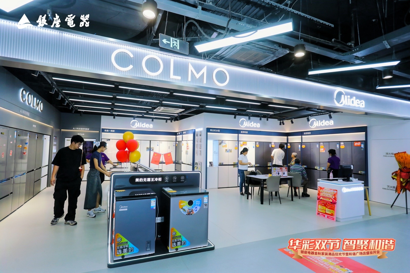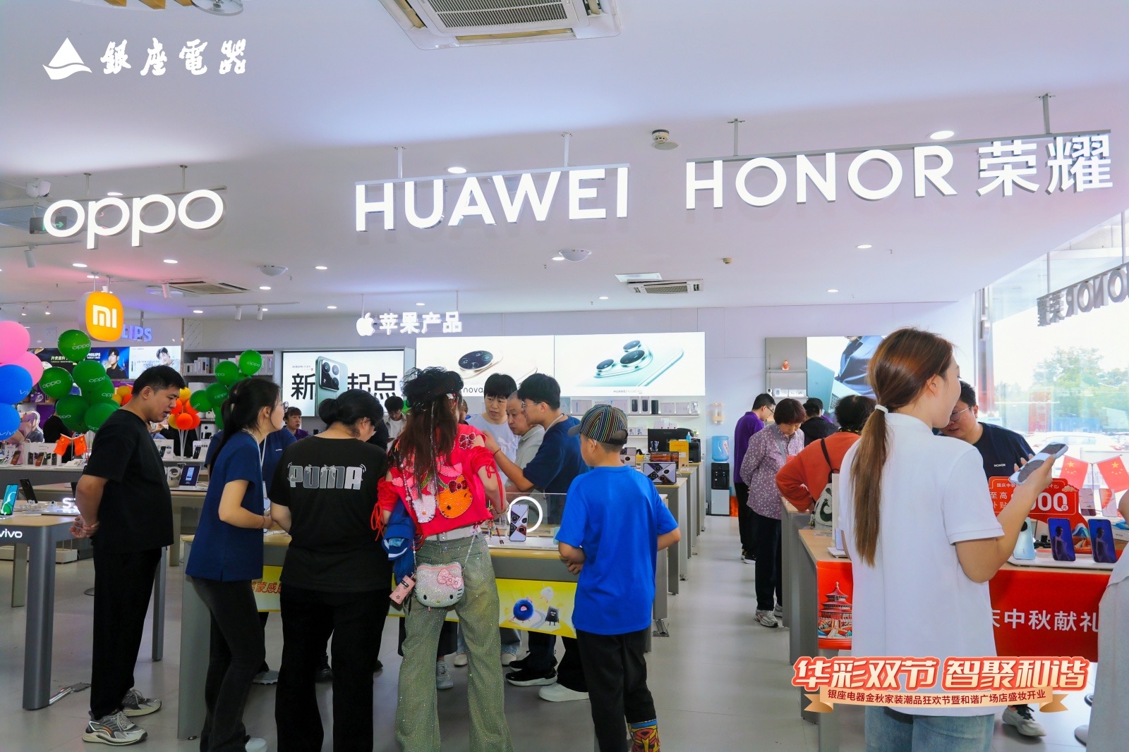 10月1日,恰逢国庆中秋双节叠加的喜庆时刻,银座电器金秋家装潮品狂欢节暨和谐广场店盛妆开业活动盛大举行。本次开业以“华彩双节 智聚和谐”为主题,融合中秋团圆温情与国庆家国情怀,打造了一场集国潮文化、家电焕新、沉浸体验于一体的金秋家装盛宴。