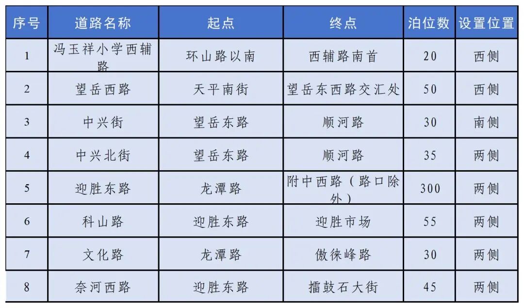 1.路内停车泊位及临时停车路段