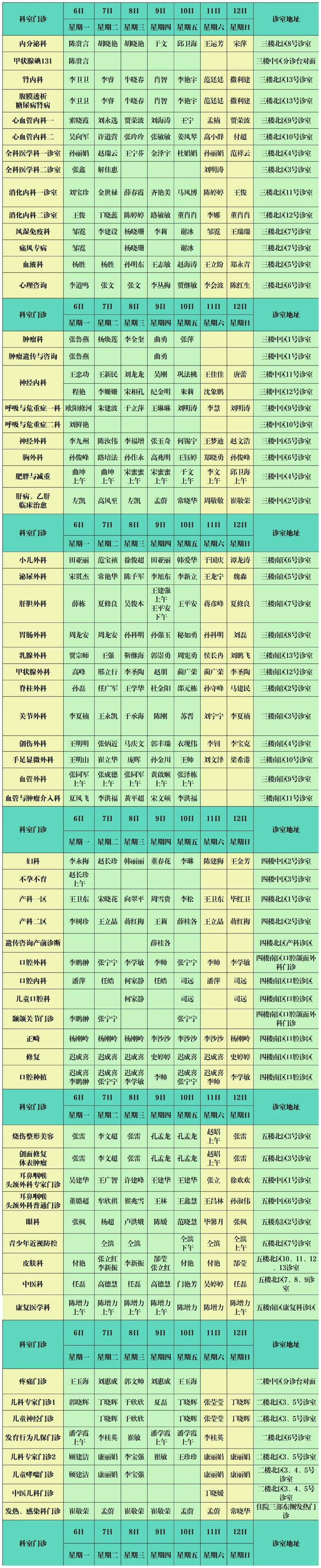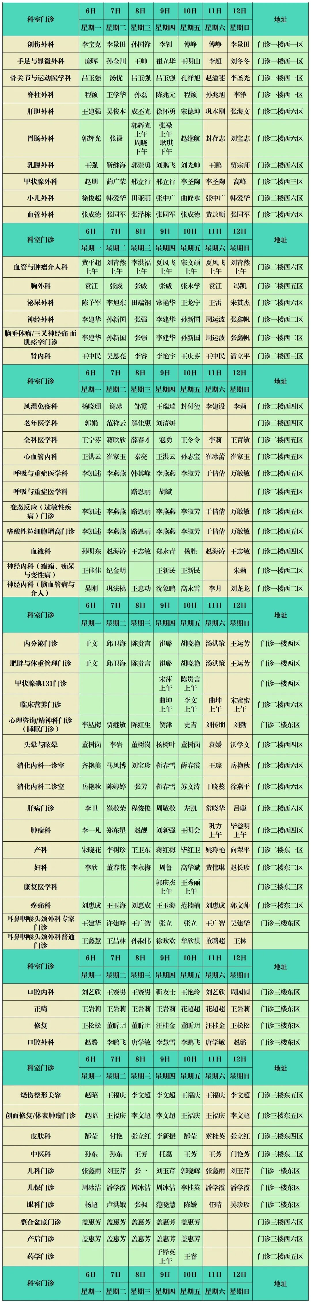 医技科室:十一假期,医院各医技检查科室(除特检科、核医学科)检验、检查正常进行。
