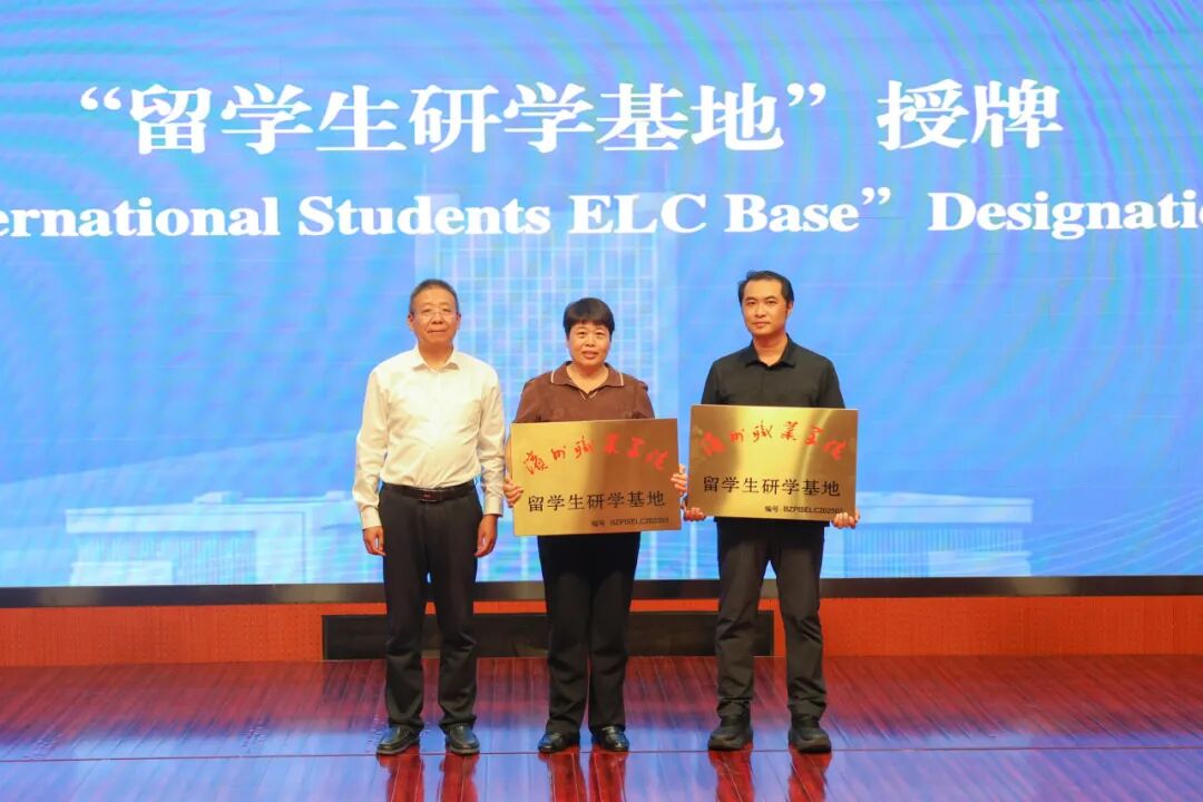 胡洪涛为合作单位授予“留学生研学基地”牌匾。