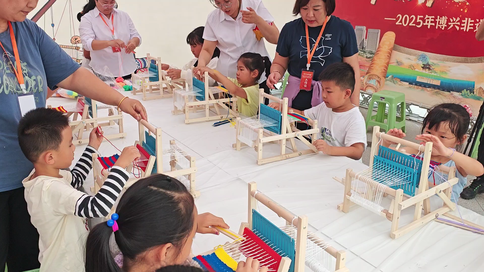 在手工体验区,浓郁的传统文化气息扑面而来,蓝印花、手工布老虎、中草药香囊、草苇编工艺等多个非遗技艺体验项目一字排开,吸引着不同年龄段的人们驻足体验。在专业非遗老师的指导下,家长和孩子拿起工具体验非遗手工制作,指尖的动作虽略显生涩,眼神却满是认真。