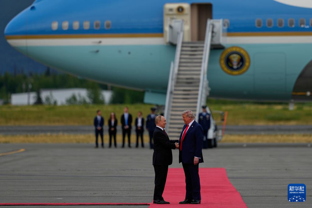 8月15日,特朗普(前右)和普京在阿拉斯加埃尔门多夫-理查森联合军事基地的机场会面。