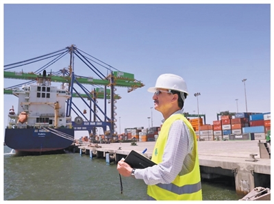 友谊港港务局局长技术顾问费萨尔在港口巡视。 |