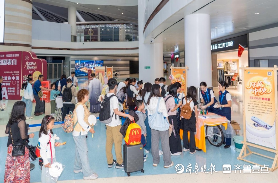 节日期间,烟台机场还在航站楼举办了“月满华诞,‘翼’起献礼”双节同庆嘉年华活动。活动涵盖音乐演出、科技展示、互动游园、主题打卡、产品发布等多个板块,不仅通过汉服诗会、漆扇制作、中秋花灯等环节诠释传统文化的现代表达,也融合了人工智能、机器人互动等科技元素,满足了不同年龄段旅客的参与需求,展现了烟台机场作为现代化空港的创新活力与人文温度,为这个“双节”小长假增添了文化厚度与节日温情。
