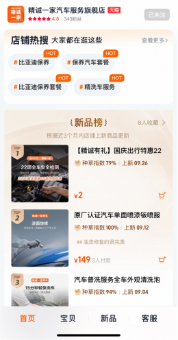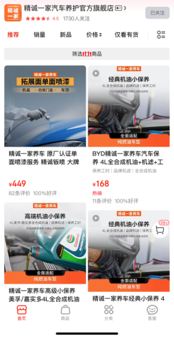 “精诚一家养车”此前已入驻抖音与京东,近一个月内GMV突破百万。电商平台的布局,意味着比亚迪“精诚一家养车”正式为所有品牌车辆提供养车服务,利用主机厂资源优势与4S级服务品质,广交四方朋友,为更多车主打造越级体验。
