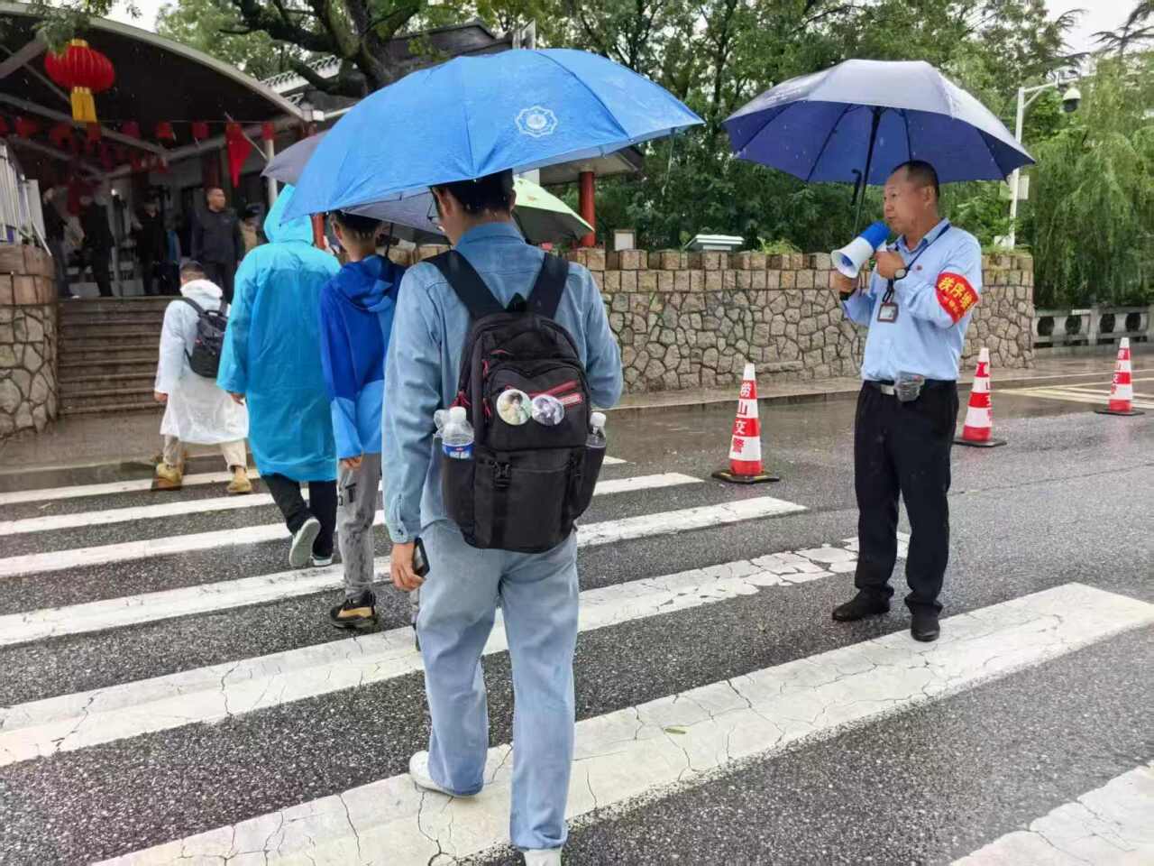 “车辆请往这边行驶,谢谢配合。”“下雨天路滑,大家登山时一定要注意脚下安全。”……10月5日上午7时30分许,通往景区的旅游专用路还笼罩在蒙蒙细雨中,仰口管理服务中心秩序管理科工作人员王俊华便像往常一样,早早来到工作岗位。作为一名退役军人,这是王俊华2019年底转业至景区工作后的第6个国庆节,也是他第6次坚守在国庆假期一线。“下雨也没有阻挡游客们的出行热情,假期这几天,仰口游览区车辆通行压力明显增加,我和同事们全员上岗,确保大家都能有一个安全、愉快的游览体验。”被雨水打湿的柏油路上,王俊华的身影格外忙碌,一会儿在路口疏导涌入景区的车流,一会儿又来到入口处耐心提醒游客。