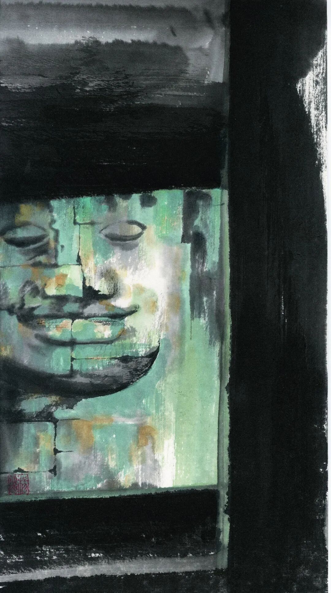 《高棉的微笑(四)》国画45cmx24cm 2015年