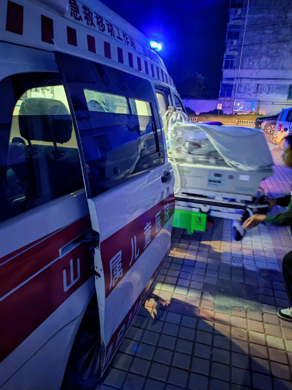 当地医院在危急关头,第一时间拨通了0531-87182176——山东大学附属儿童医院新生儿转运热线,接到转运请求后,新生儿科迅速响应,立即启动危重新生儿转运流程。
