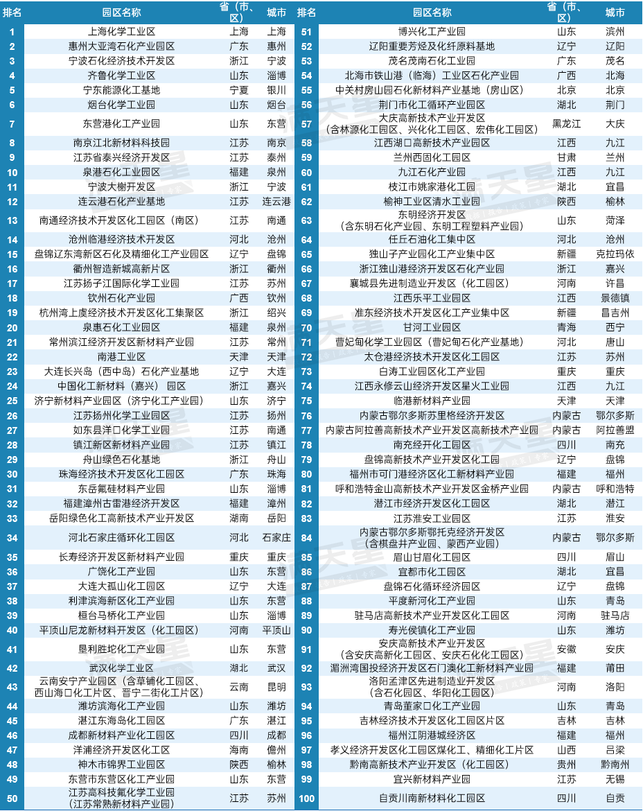 淄博入围的3家化工园区分别是位列全国第3的齐鲁化学工业区、全国第31的东岳氟硅科技材料产业园以及全国第39的桓台马桥化工产业园。