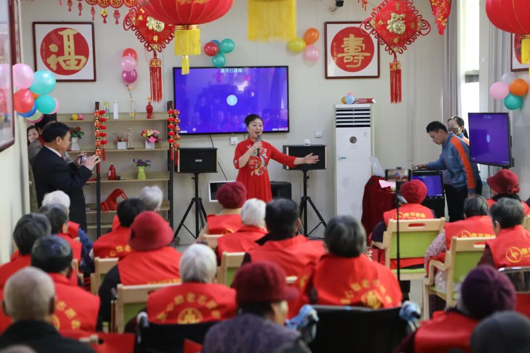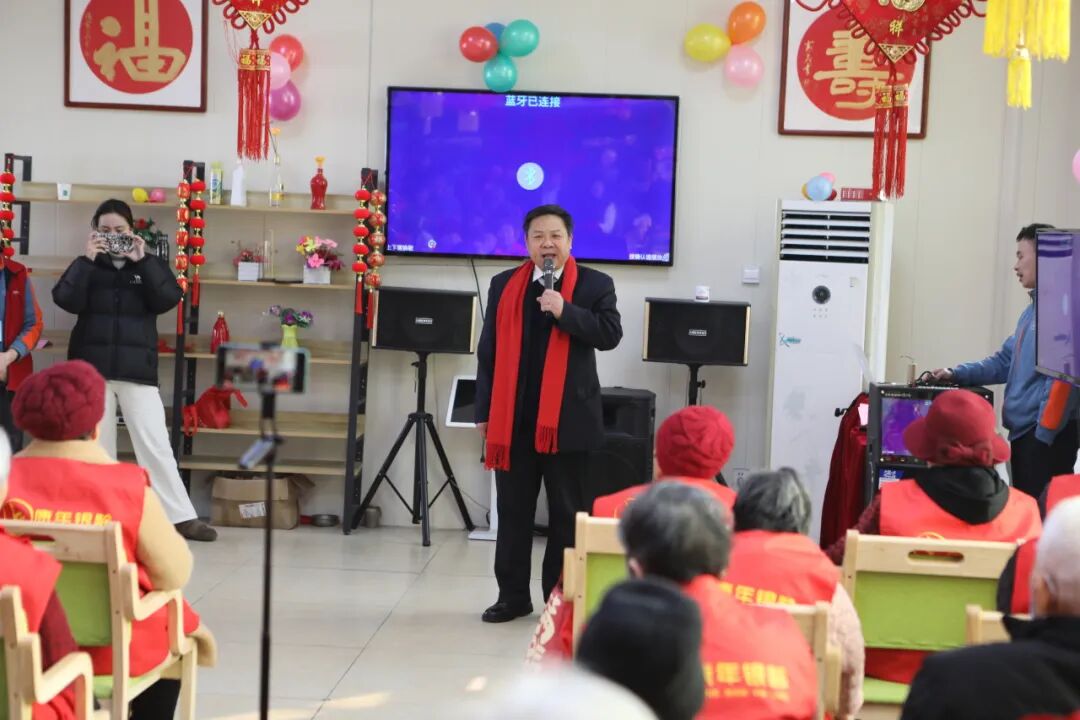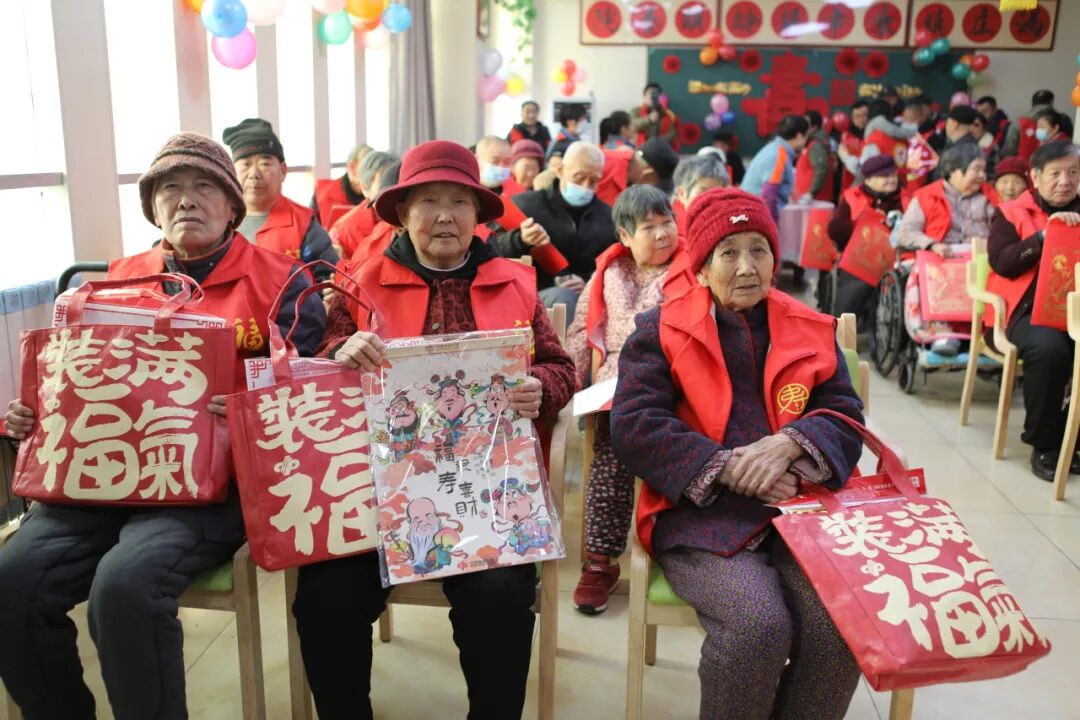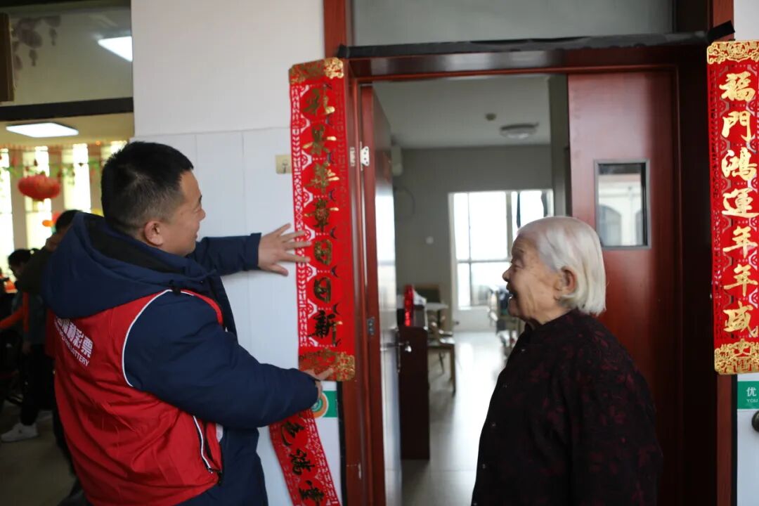 志愿者们将精心备好的“福彩福袋”——内装红火喜庆的福字、春联等物资送到每位老人手中。鲜艳的红色映照着老人们灿烂的笑容,增添了浓厚的年节气息,“这福字真好看!贴在门上正正好!”手持吉祥的福字,一位老人脸上绽开了笑容,“这份心意暖到心坎儿里了。”随后,一场温馨融洽的联欢会在活动室热闹开场,形式多样的文艺表演赢得了老人们的连连喝彩,台上台下情感交融,洋溢着一片温馨与感动。